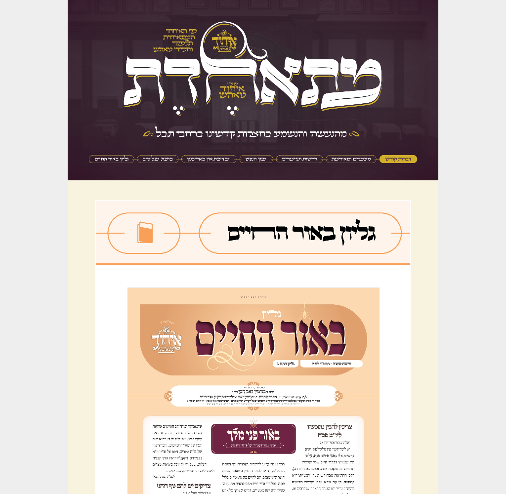 גליון באור החיים - פרשת מקץ - חנוכה תשפ"ו #1058